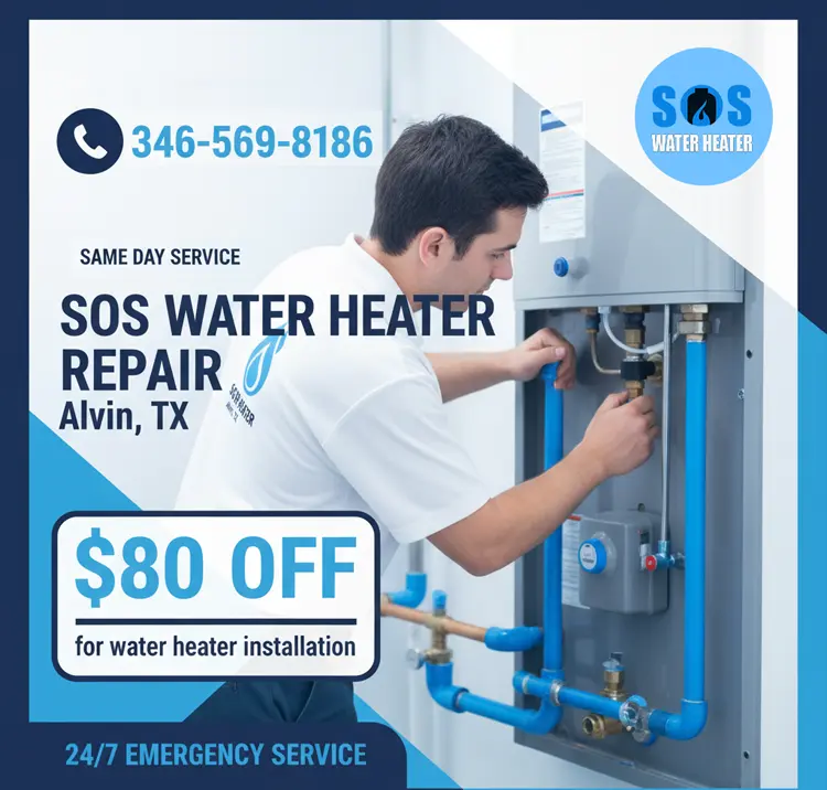 SOS Water Heater Alvin TX presents urgent repair facilities for water heaters addressing issues like tank bursts and malfunctioning heaters that can lead to significant water damage and discomfort. We give precedence to quick response times and are equipped for immediate support.